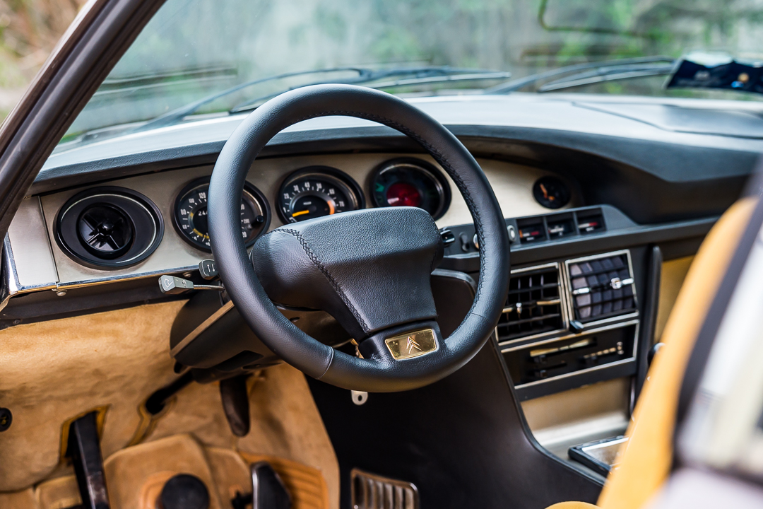 Citroën Maserati SM SC, Brun Rocquebrune Metallic, with Beige Rhovyline velvet upholstery.