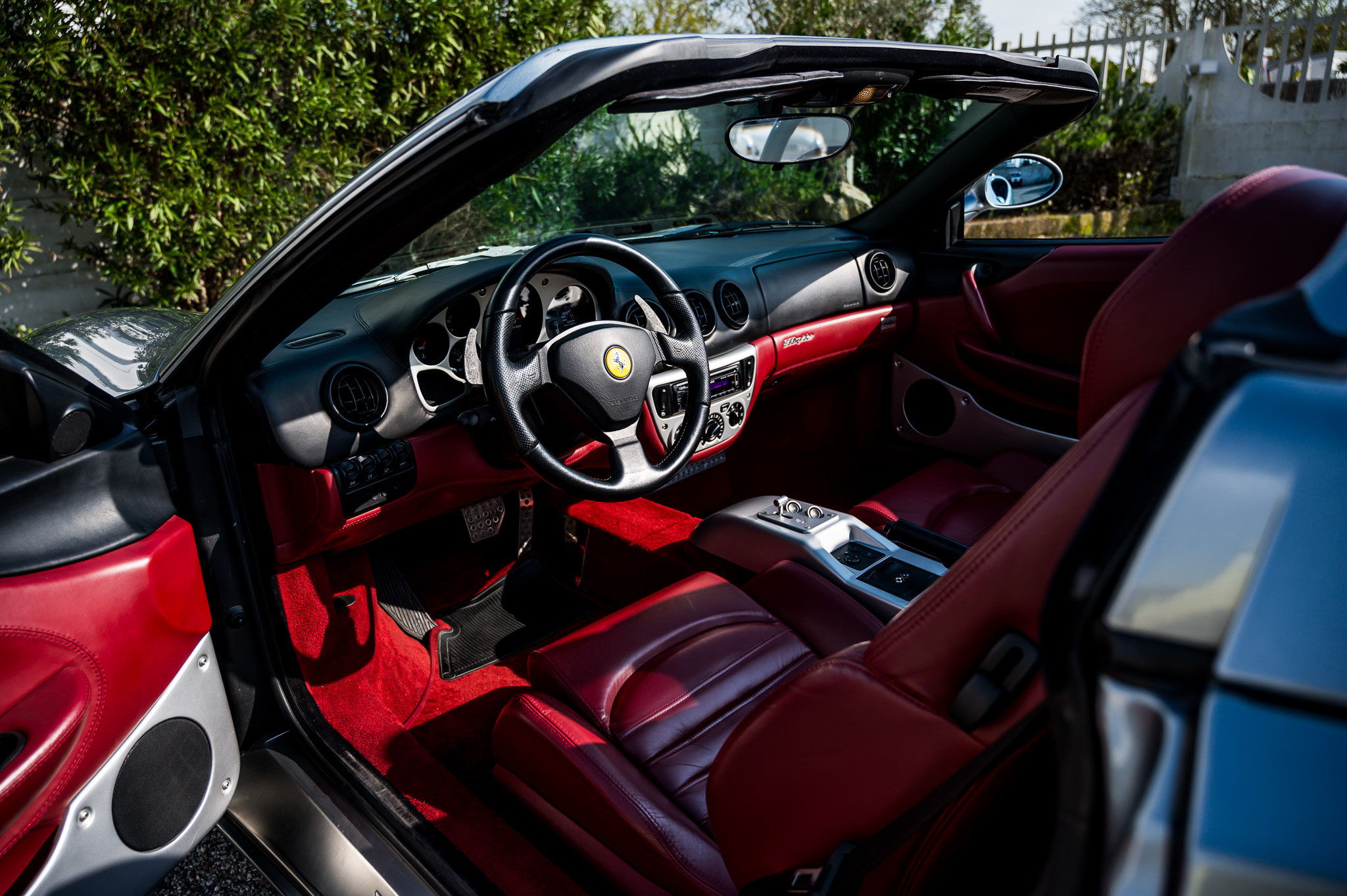 Ferrari 360 Spider F1, auto in eccellenti condizioni. Colore Grigio Titanio con interni in pelle bordeaux. Impianto scarico Tubistyle acciaio inox. Versione Spider con tetto nero in tela ripiegabile elettricamente . Cambio F1. Sempre tagliandata presso concessionari ufficiali Ferrari. Ultimo tagliando presso “ Sauro – Gruppo Ineco” 8 febbraio 2024 a km 61386, con sostituzione delle cinghie di distribuzione. Pronta per visione e prova presso la nostra sede