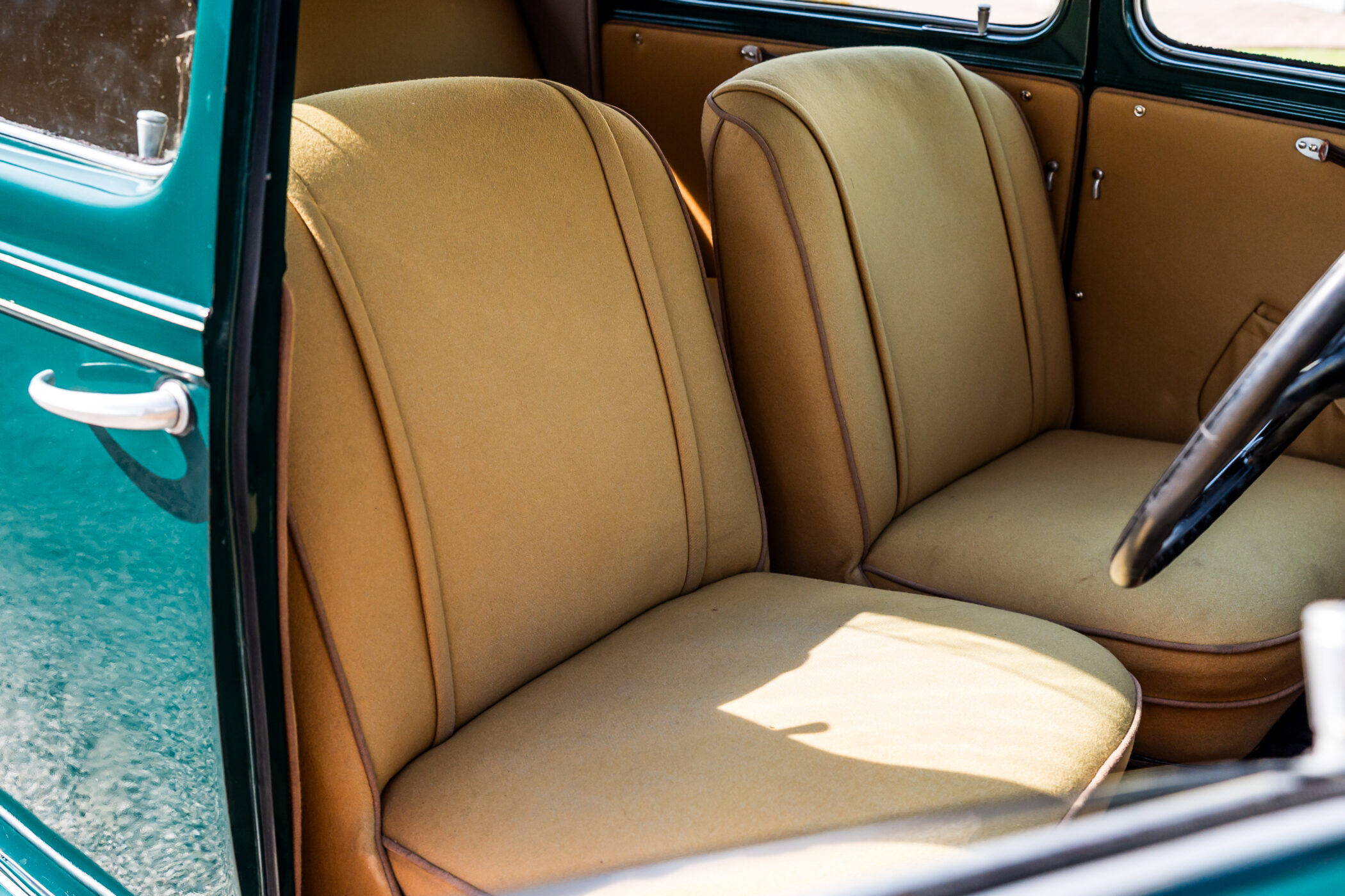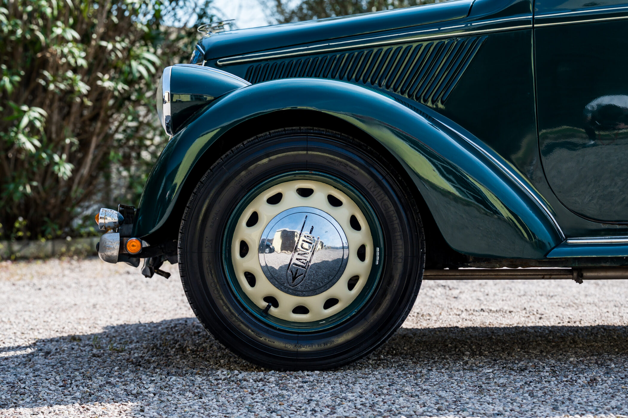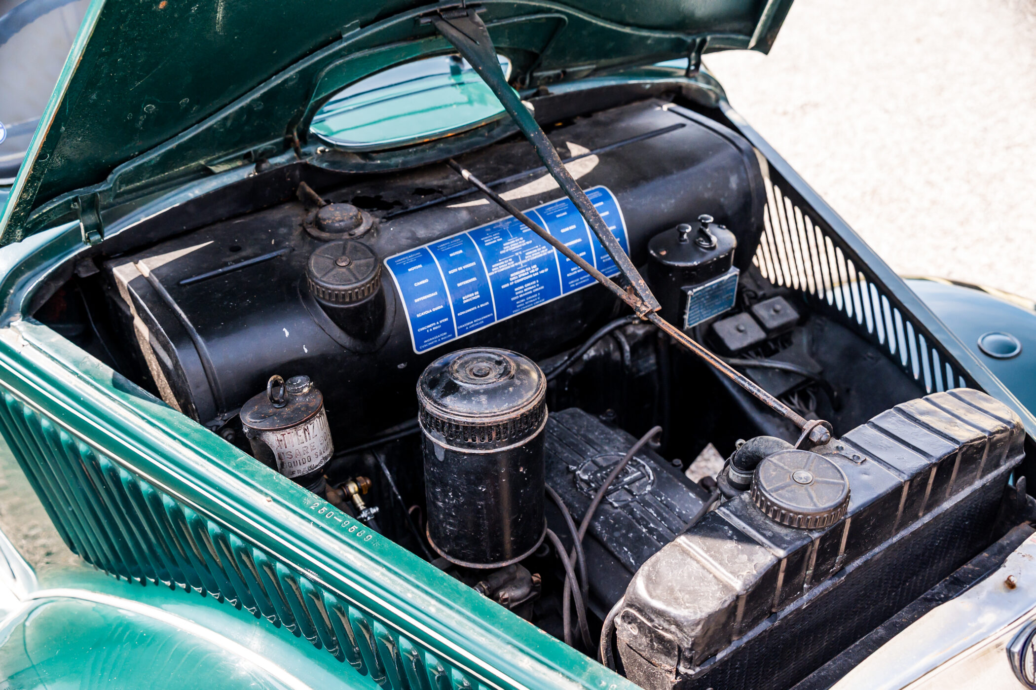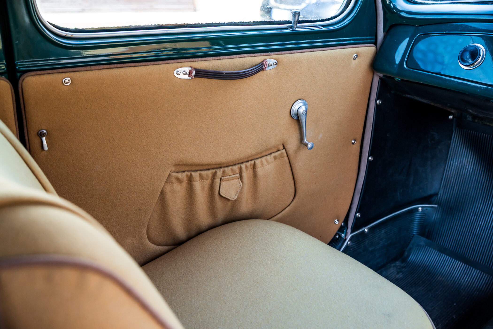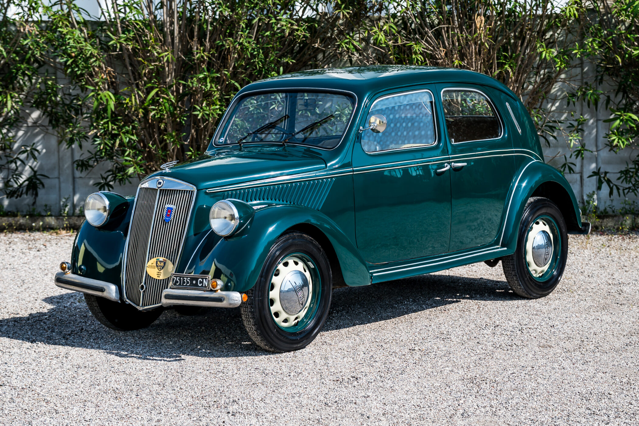 Lancia Ardea in elegante livrea verde con selleria in panno marrone chiaro.