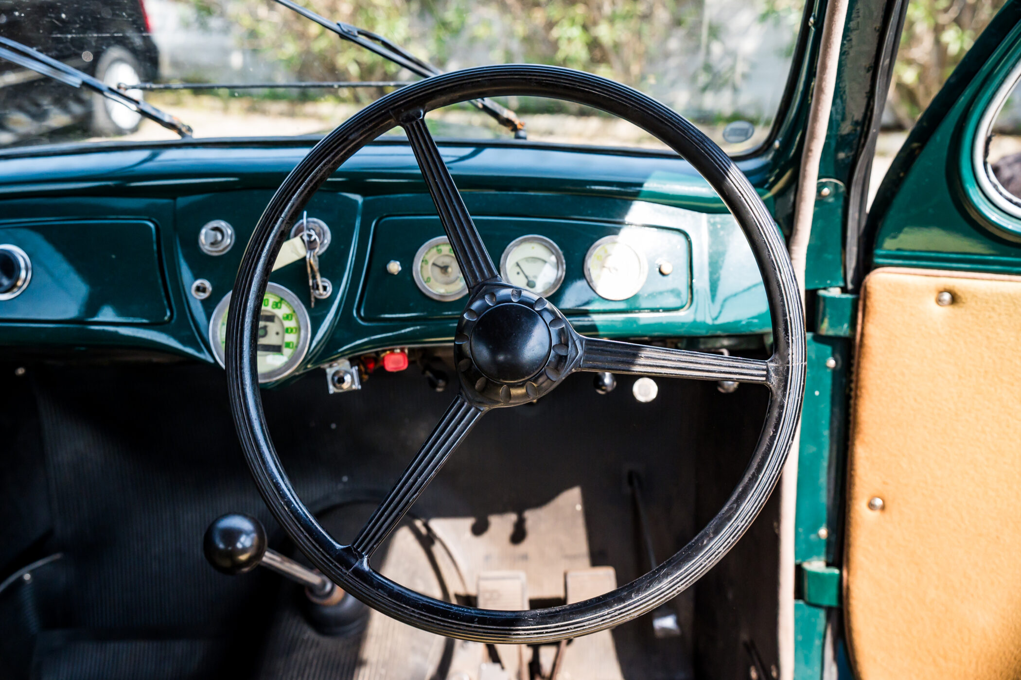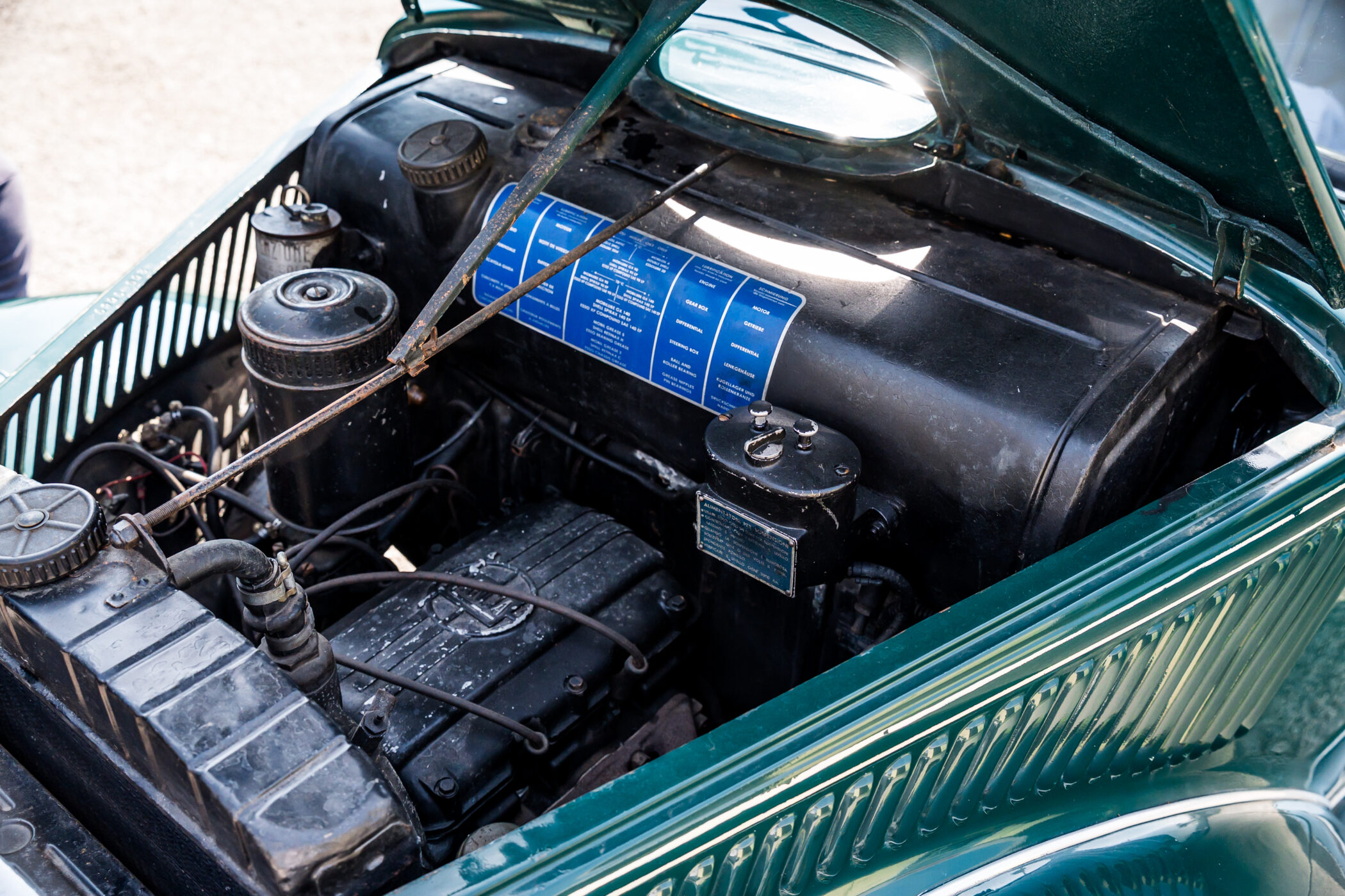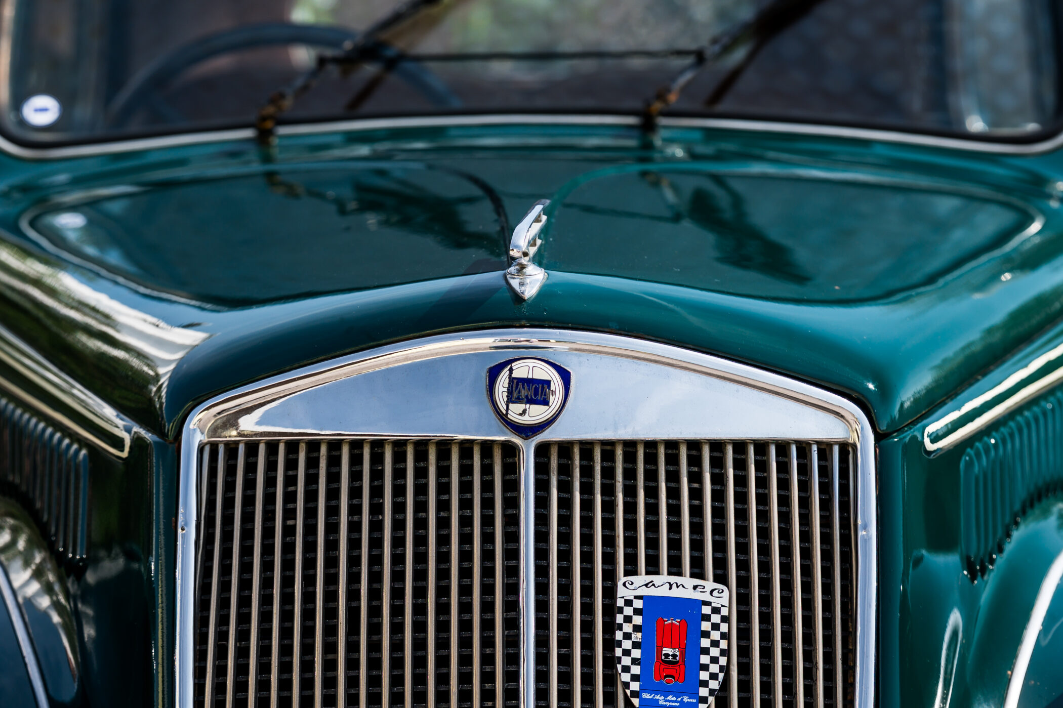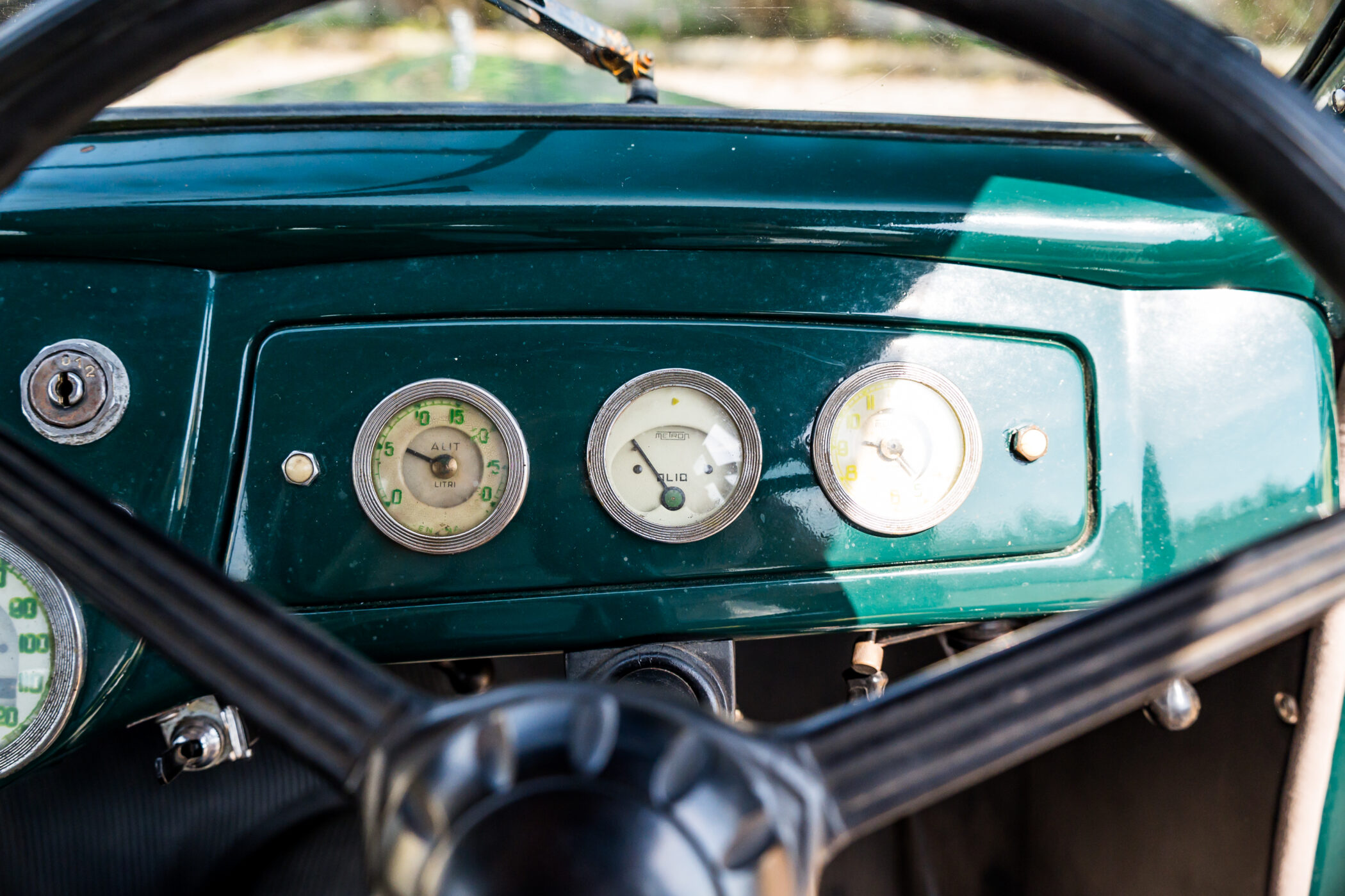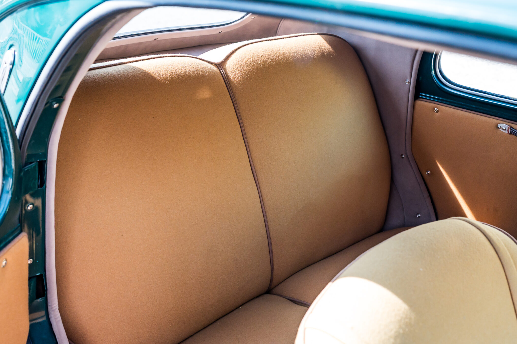Lancia Ardea in elegante livrea verde con selleria in panno marrone chiaro.
